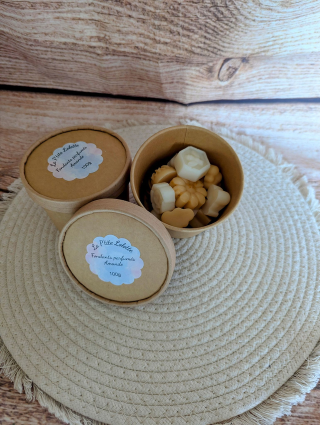 Box en carton comprenant 100g de fondants parfumées de plusieurs tailles différentes .