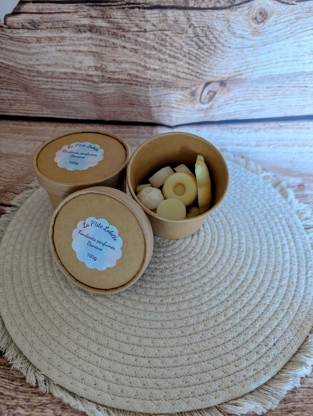 Box en carton comprenant 100g de fondants parfumées de plusieurs tailles différentes .